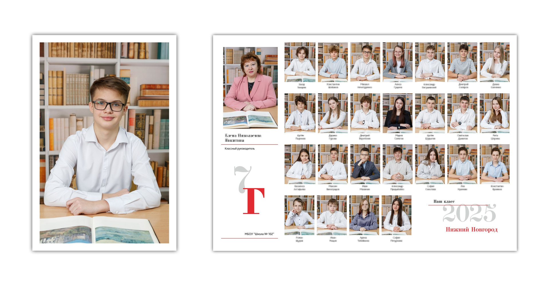 Этот вариант подходит для любого класса, и для первого, и для третьего и для пятого, когда не хочется платить за большой альбом, но есть желание сделать красивые портреты детям, виньетку класса и возможно общее фото на память.
