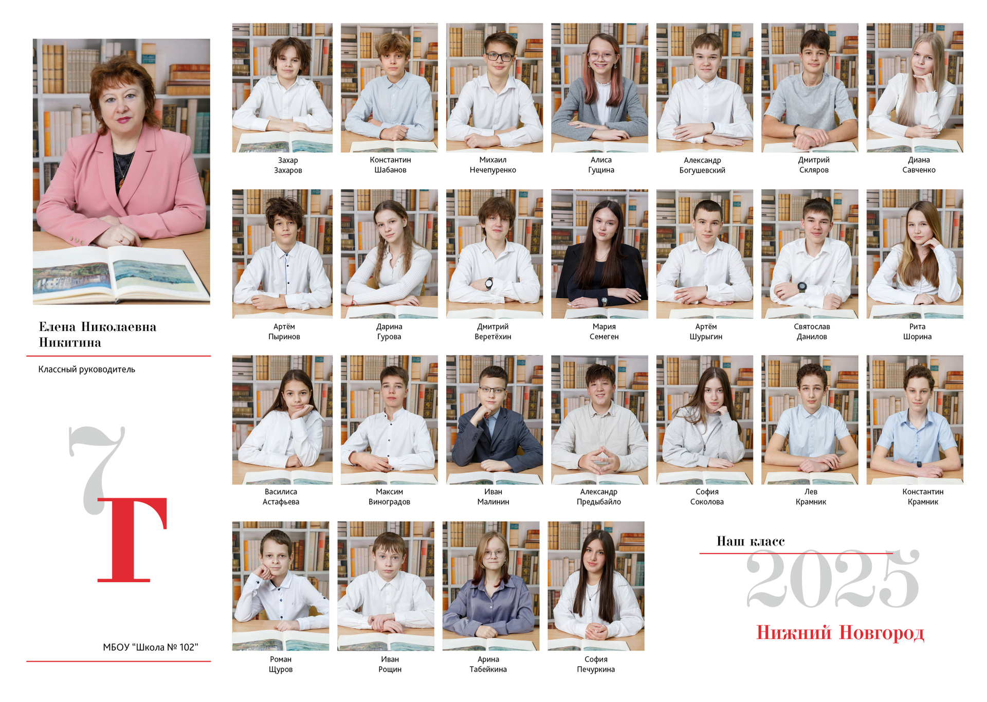 - Напечатанная общая фотография класса размером 20×30