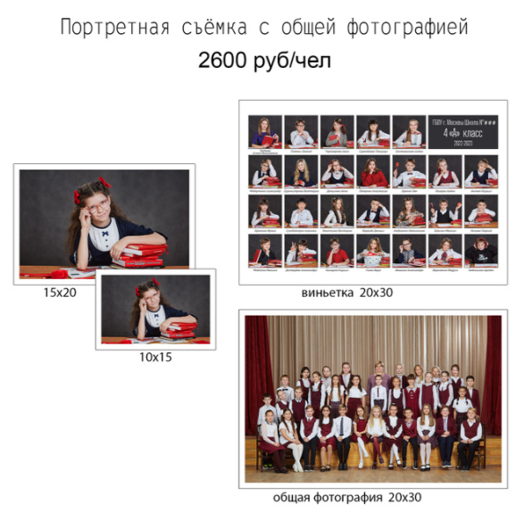 Виньетка класса + общая фотография + портрет 10×15 и 15×20
