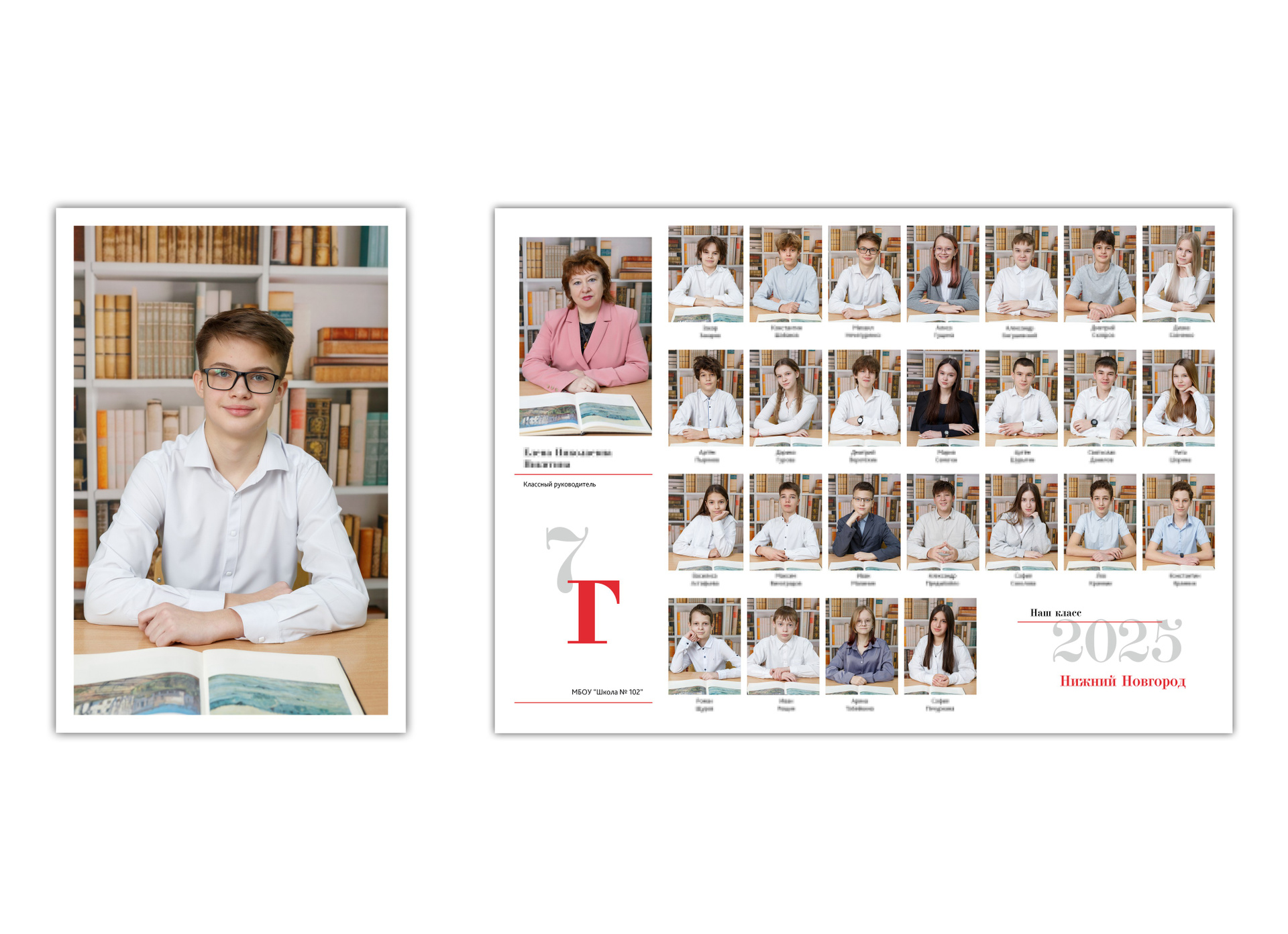 Этот вариант подходит для любого класса, и для первого, и для третьего и для пятого, когда не хочется платить за большой альбом, но есть желание сделать красивые портреты детям, виньетку класса и возможно общее фото на память.